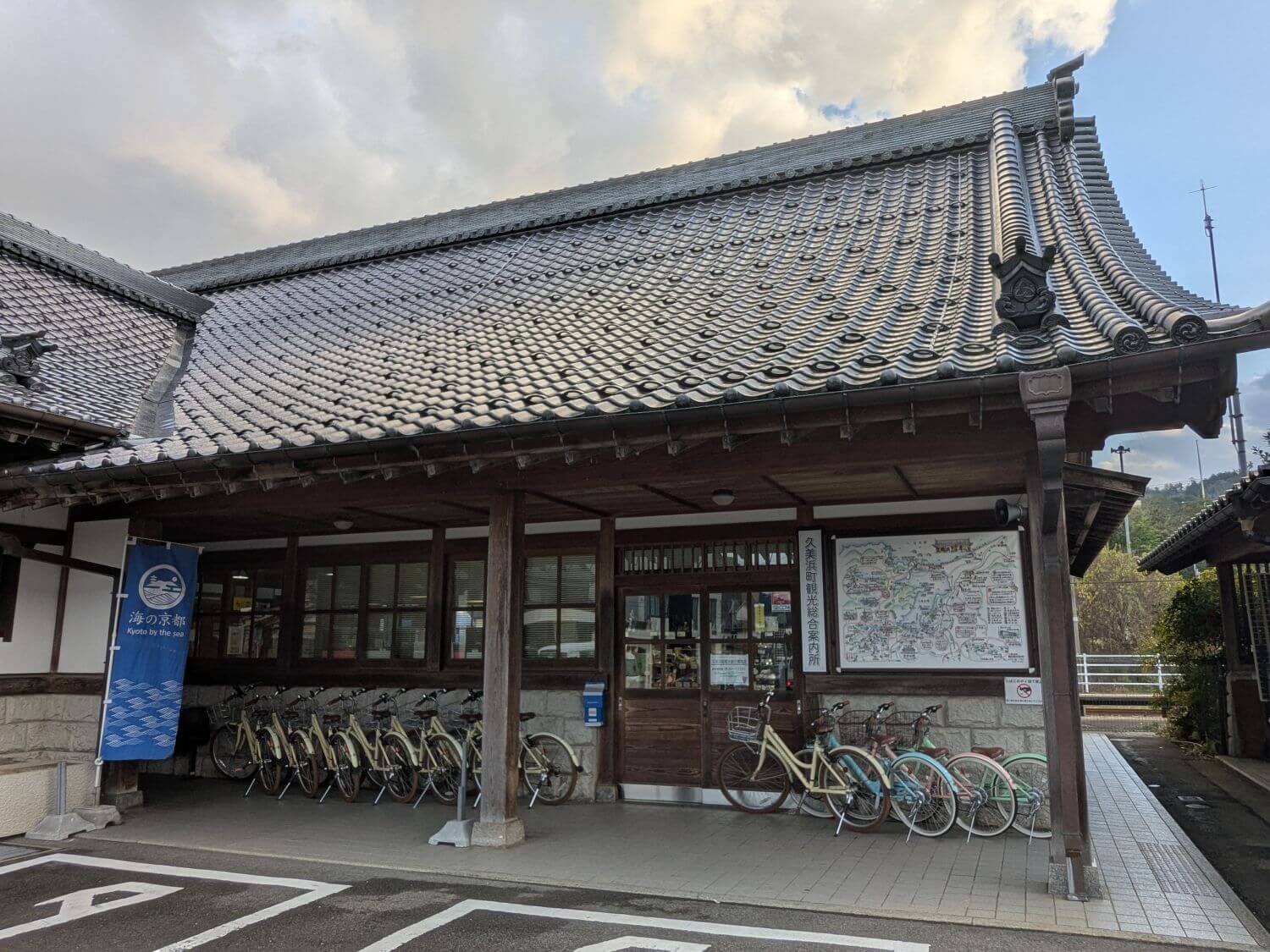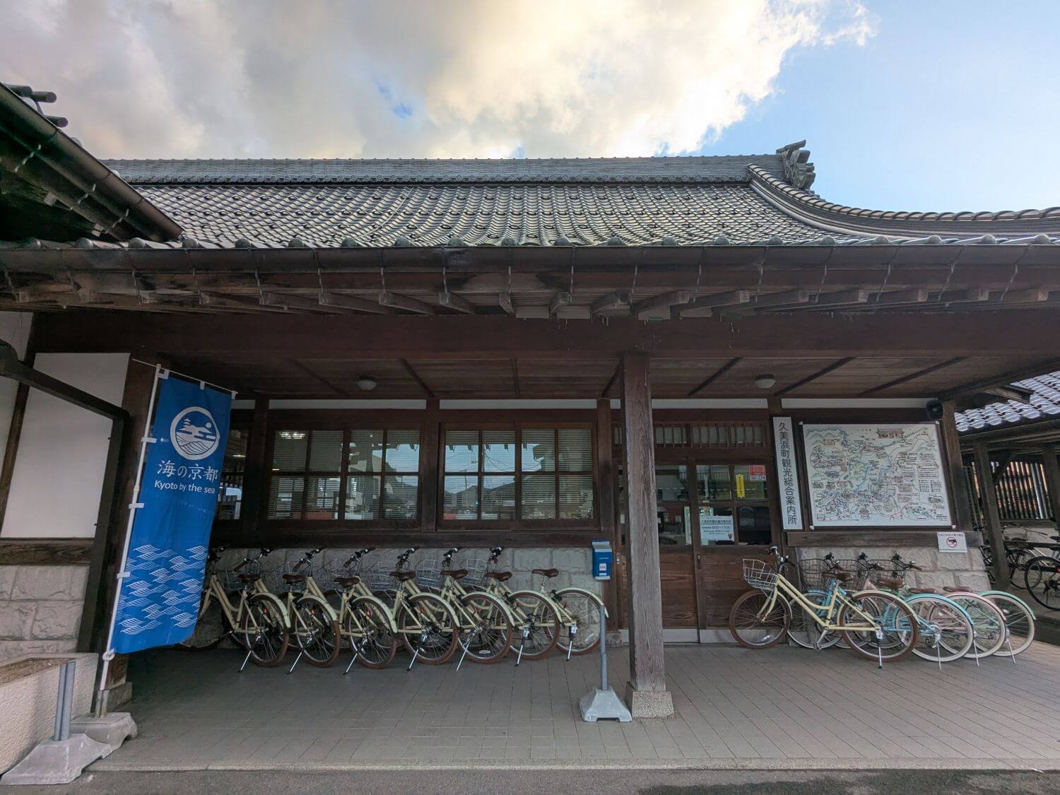 Borrow a bike from the Tourist Information Desk inside Kumihama Train Station. They will give you everything you need to start on your cycle trip.