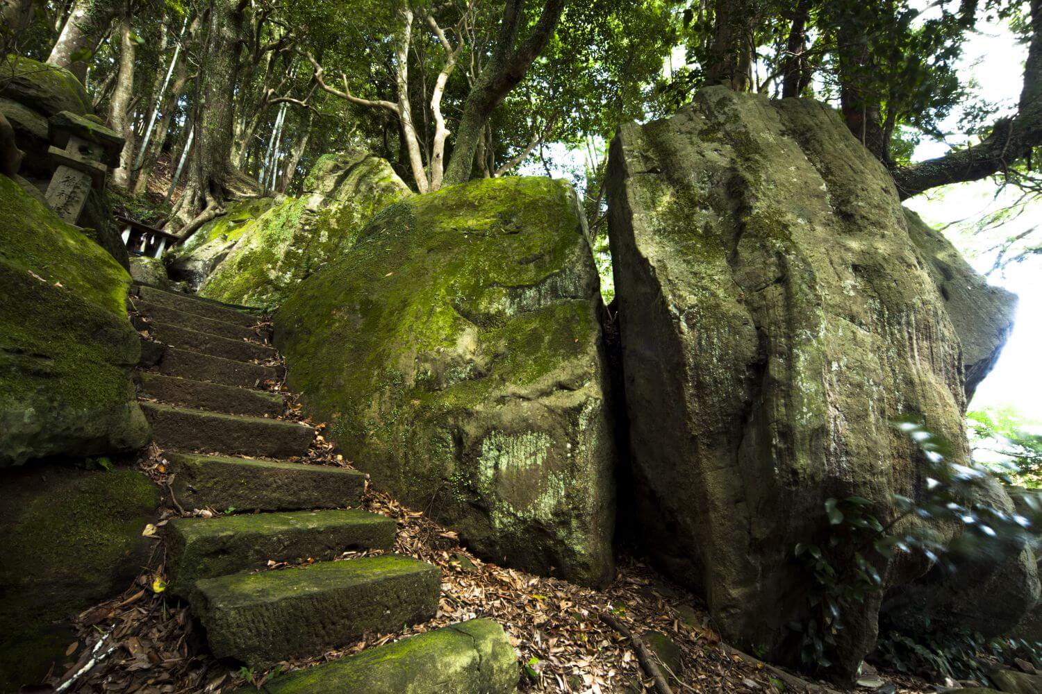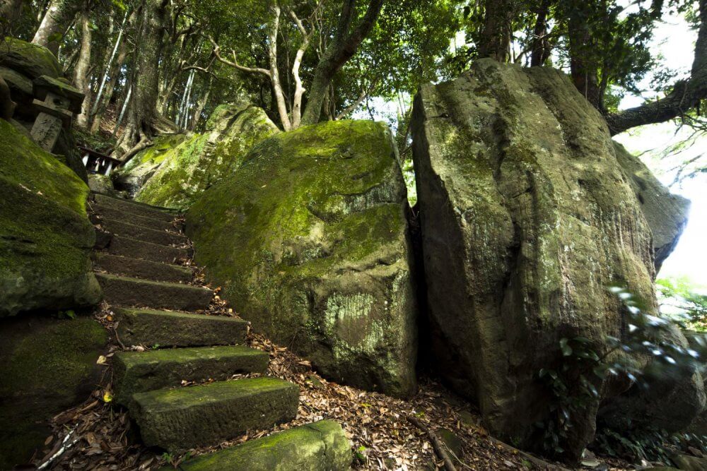There is also an ancient boulder that is believed to be the remains of an ancient solar ritual. There is a crack in the stone that was used to measure the summer solstice by the sun rising over Mt. Kabutoyama to the east. It's famous as a power-spot, where you can still feel the ancient energies.